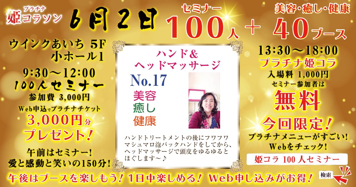 プラチナ☆メニュー 17 ★アロマの優しい香りに癒されてCLARIC★ハンド&ヘッドマッサージ★6月2日 プラチナ姫コラVol.1